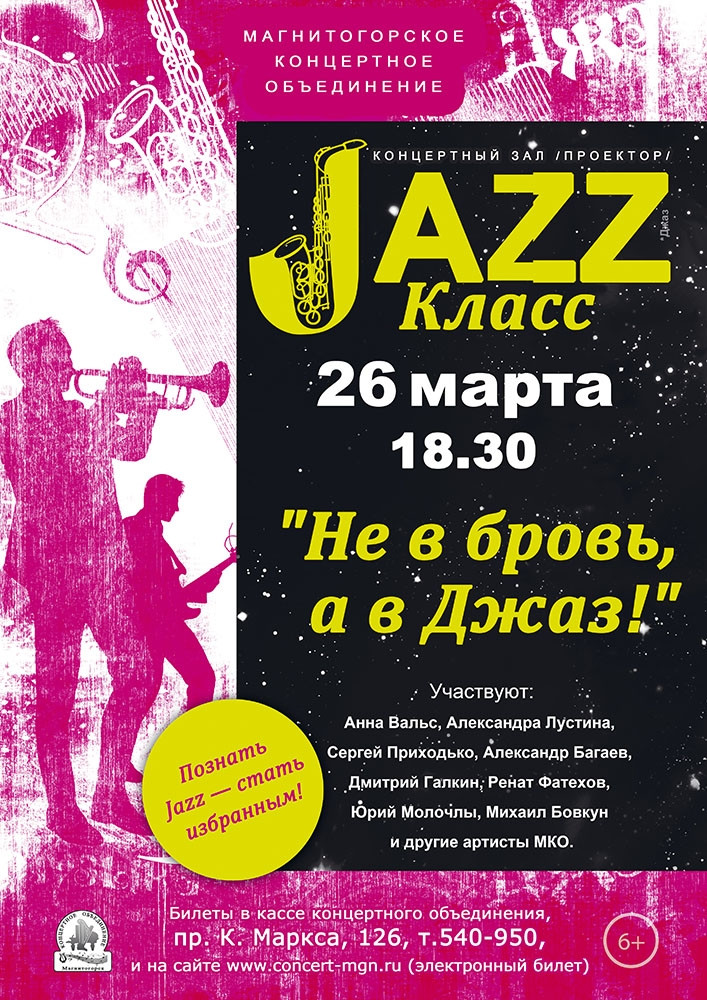 Магнитогорск. 26 марта в 18:30 в зале Концертного объединения Магнитогорска для жителей и гостей города пройдет увлекательный концерт джазовой музыки.