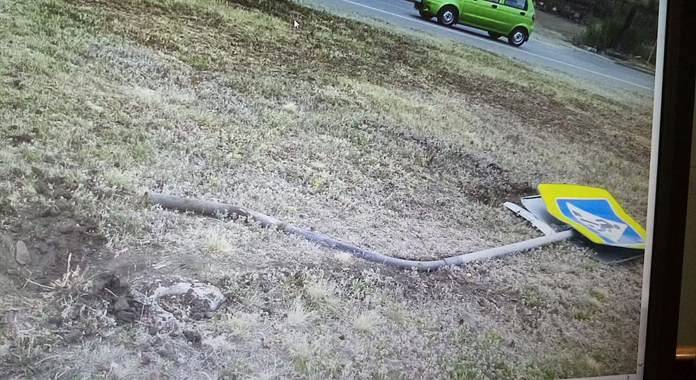 Сотрудники полиции Магнитогорска устанавливают личность водителя, который совершил наезд на дорожный знак и скрылся с места ДТП.