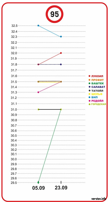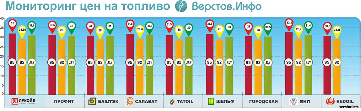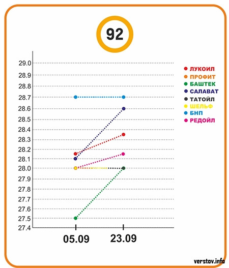 Повышение и падение цен отчетливо видно на графиках. На заправках сетей «Баш-Тэк» и «Салават» 92-ой бензин подорожал на 50 копеек. Фиксируется и рост цен на АИ-95, а вот цены на дизельное топливо, за небольшим исключением, остаются на том же уровне, либо снижаются.