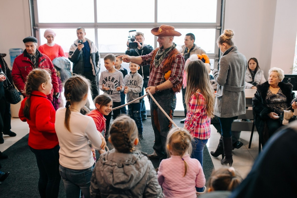 В это время детей развлекали аниматоры. Маленькие ценители автомобилестроения рисовали, участвовали в подвижных играх и веселились. Не обошлось и без моментального фото на память.