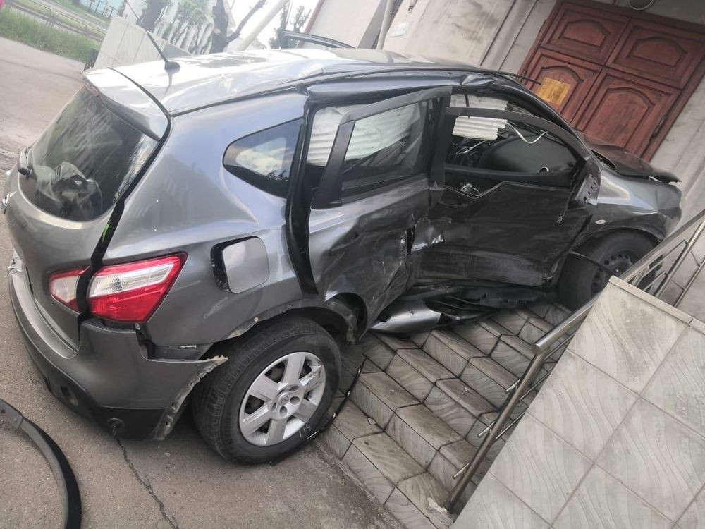 Эффектное ДТП. После столкновения «Ниссан» оказался на крыльце дома, а водитель – в больнице