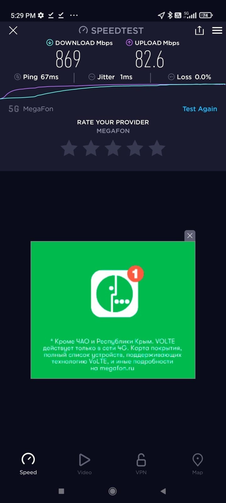 Оценить скорость мобильного интернета теперь могут пользователи в городе Магнитогорске Челябинской области. Максимальные значения в сети оператора превышают 800 Мбит/c, что почти в 5 раз выше показателей предыдущих поколений связи.