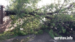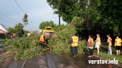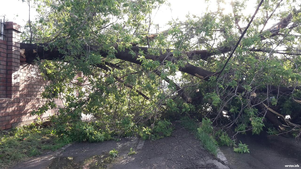 Из-за обрушившихся деревьев было перекрыто движение трамваев и машин на улице Комсомольской. Сразу два дерева в начале и в середине улицы во время шквалистого ветра упали на проезжую часть дороги и на рельсы, причем одно из них обрушилось прямо на капот проезжавшего по улице автомобиля «Туарег».