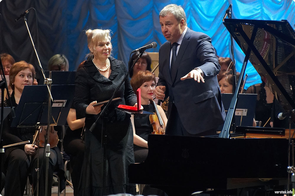 Не обошлось и без официальных поздравлений. Первым на сцену поднялся Вадим Евдокимов. Судя по его выступлению, после прибытия в наш город нового рояля, в Магнитогорске начнется новая музыкальная эра: