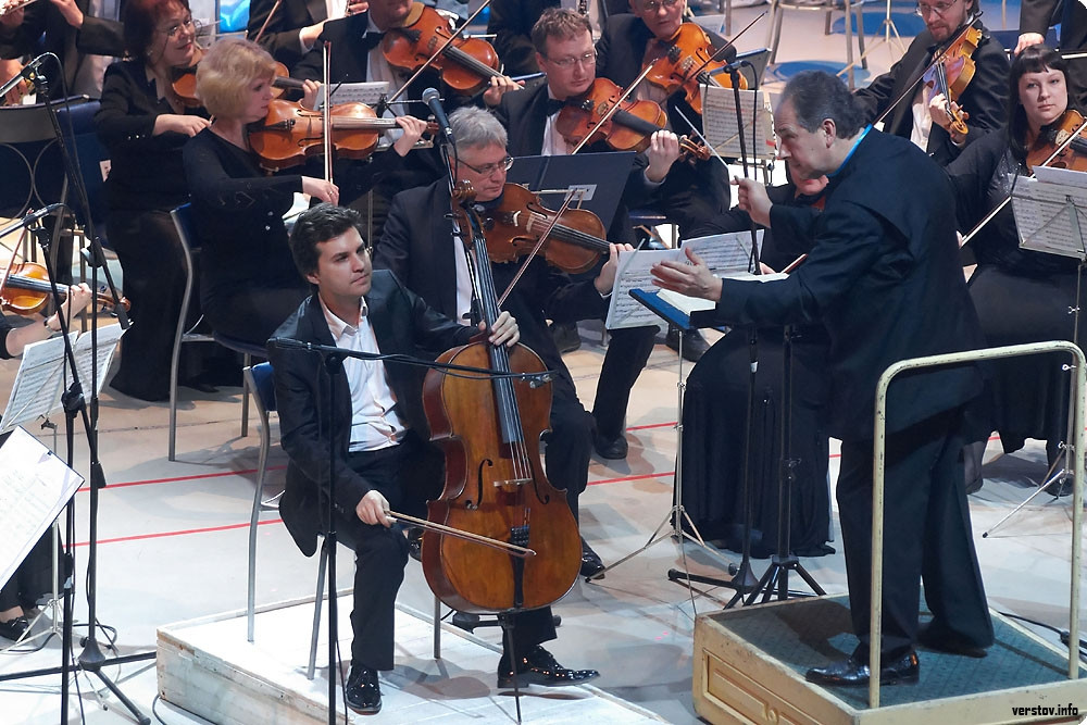 Концерт был посвящен приближающемуся 175-летию великого русского композитора Петра Ильича Чайковского. В нем принял участие Уральский академический филармонический оркестр под управлением народного артиста России Дмитрия Лисса. Музыканты впервые выступали в Магнитогорске после более чем 30-летнего перерыва. В первом отделении с оркестром выступили молодые музыканты с мировым именем - виртуозная скрипачка Алена Баева и ведущий российский виолончелист Александр Бузлов. В их исполнении прозвучали Концерт для скрипки с оркестром и Вариации на тему рококо Чайковского.
