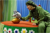 Познавательная интерактивная сказка для детей расскажет маленьким зрителям о театре. Дети вместе с артистами станут участниками представления: сделают декорации, посадят на сцене огород, помогут Деду и Бабе разбить золотое яичко, отправятся в лес, а потом спасут Цыпленка (создатели спектакля слегка изменили сюжет всем знакомой истории) от злого Волка. Интерактивные моменты малыши принимали «на ура» и выполняли все задания с большим удовольствием.