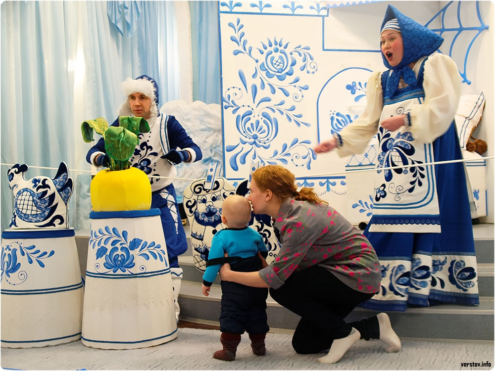 Сценаристом и режиссером спектакля для самых маленьких выступила Мария Менщикова. Она решила соединить в нем три самые известные народные сказки и показать, как родители могут использовать игры и потешки в повседневных делах для развития ребенка.