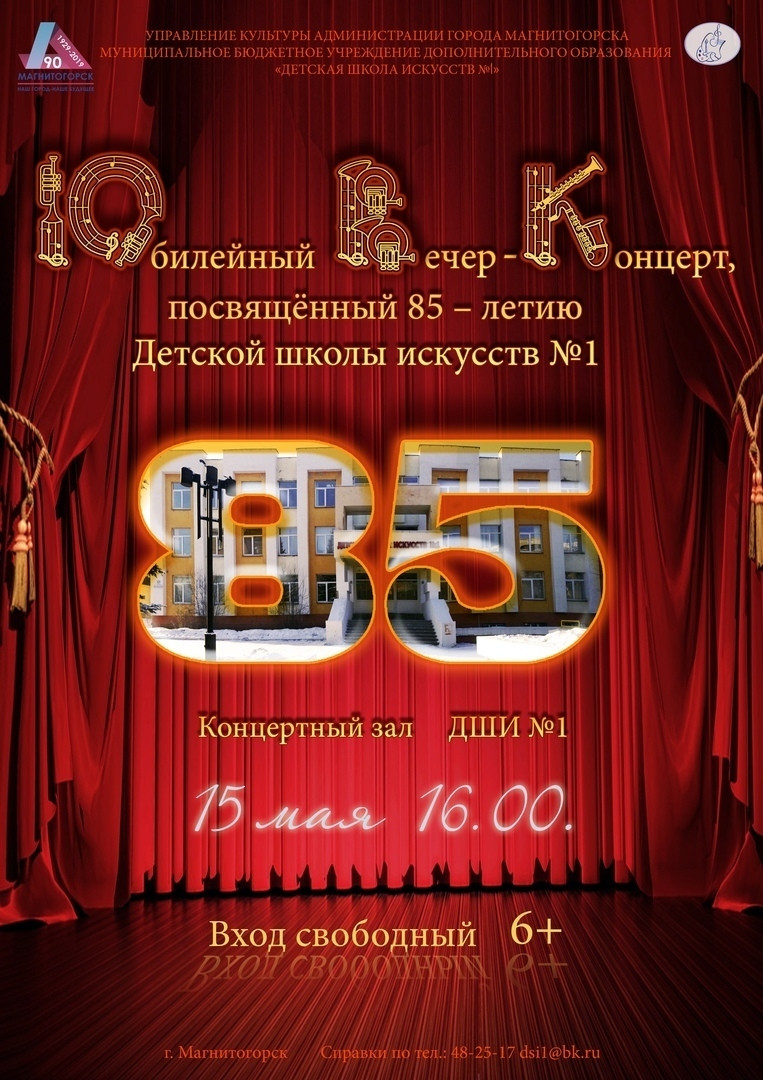 15 мая в 16:00 в концертном зале ДШИ №1 пройдёт юбилейный вечер-концерт, посвящённый 85-летию школы. В нём примут участие выпускники, преподаватели, ученики и творческие коллективы школы.