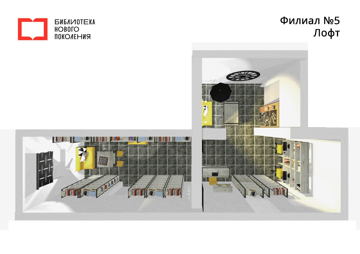 Зал молодежной литературы будет оформлен в функциональном и лаконичном стиле «Лофт». Современные молодые люди ценят в обстановке удобство и эргономичность при минимуме деталей и максимуме полезного пространства. Здесь появятся мягкая зона для группового общения, комфортные места для занятий за компьютерами, мини-фотостудия. Для тех, кто не ищет уединения, а предпочитает проводить время в компании своих сверстников, будут приобретены актуальные настольные игры, неизменно вызывающие интерес у молодежи. Фотостудия с профессиональным оборудованием для съемки позволит юным читателям попробовать себя в роли фотографа, а в оригинальных фотозонах ребята смогут организовать свои первые фотосессии, не покидая стен библиотеки. Обязательным условием в процессе создания современных фотографий является их обработка. Библиотекари познакомят подростков с навыками работы в графических редакторах, проведут занятия на графических планшетах. На полках появится современная литература и все, что необходимо прочесть по школьной программе.