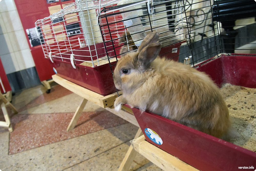 Большинство клеток с кроликами открыты – это зависит от характера длинноухого. Если он не кусается и не норовит выскочить из своего домика, а добрый и спокойный, то посетители выставки могут его гладить и даже с разрешения куратора брать на руки. Желающие могут купить палочку с кормом и покормить любого пушистика.