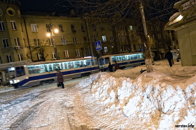 Гагарина от стадиона и до самого Правобережного кладбища убрана аккуратно – без кочек и сугробов посреди дороги. Придраться, как говорится, не к чему… Таким же ответственным образом вычищены проспекты Ленина и К.Маркса. На Советской мы обнаружили несколько машин, не справившихся с управлением и вылетевших за пределы проезжей части. Надо отдать должное другим участникам движения, тут же, без лишних слов, водители останавливали свои машины и помогали беднягам выбраться из сугробов на обочине и с трамвайных путей. ![]()
