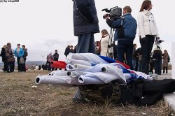В это же время в районе остановки «Завенягина» прошла акция «Пожелания России», участники которой раздавали различные предметы российской символики всем прохожим.