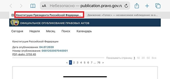 Измененный главный документ страны появился на интернет-портале правовой информации под названием «Конституция Президента Российской Федерации».