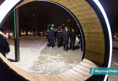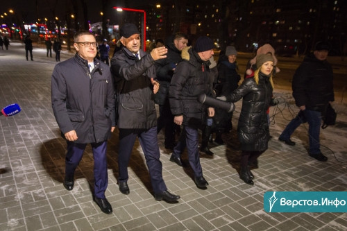 Огни Магнитки светили губернатору. Текслер и Бердников прогулялись по обновленному бульвару на К. Маркса