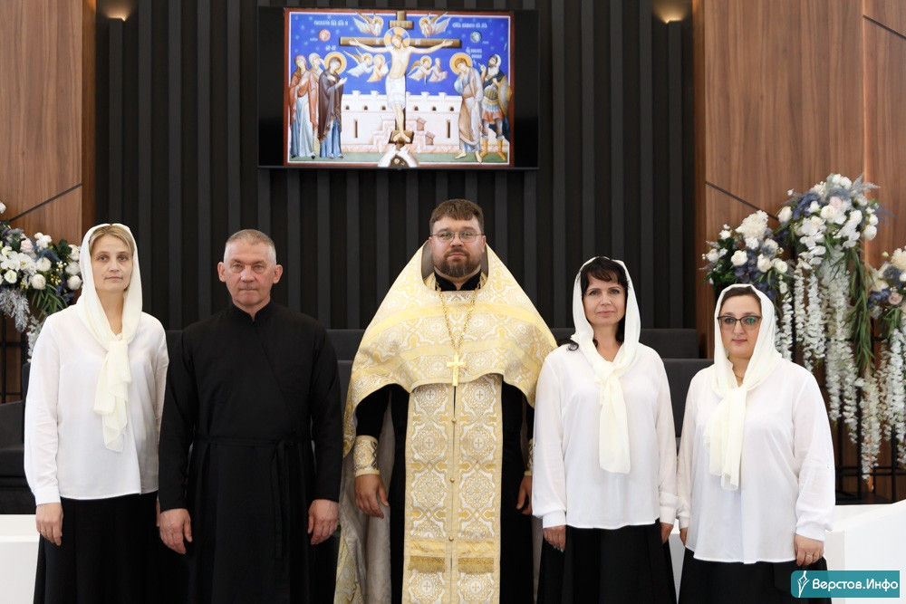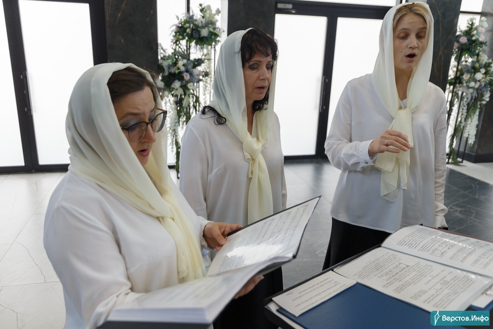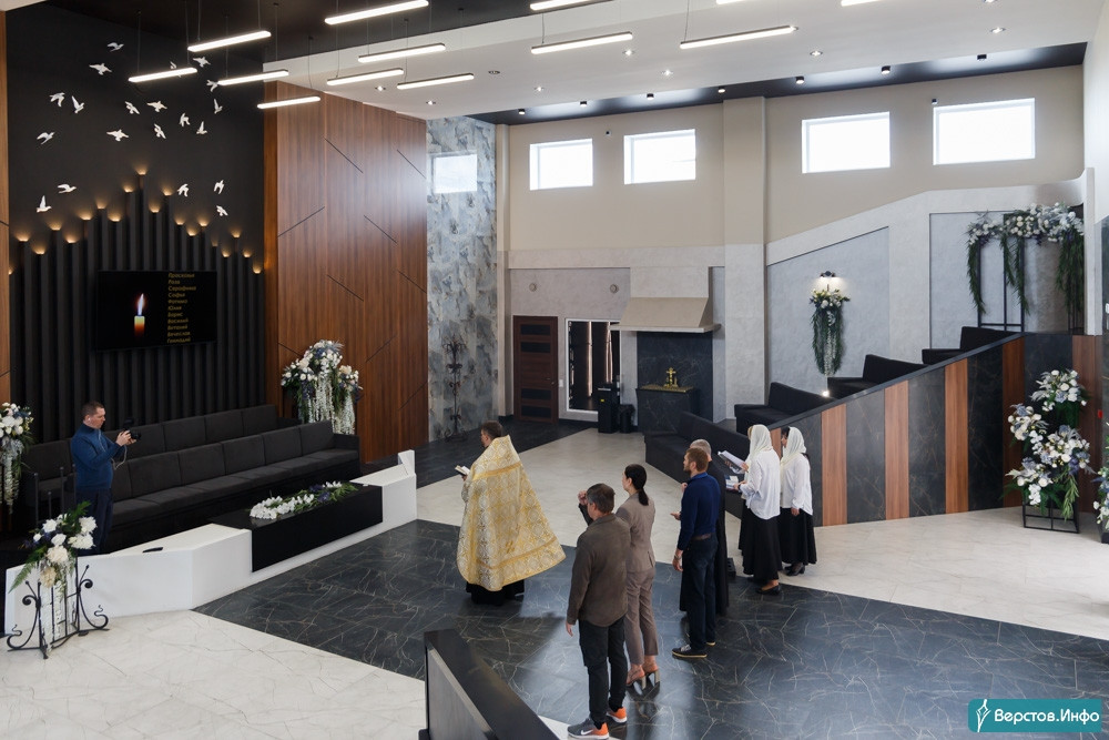 Сразу же после литургии иерей Федор Терещенко, хор и Евгений Могулевцев отправились в самый большой прощальный зал Магнитогорска на Челябинском тракте, чтобы и там отслужить панихиду по усопшим христианам, захороненным через компанию «ЕвроСервис».