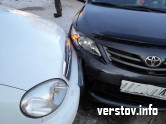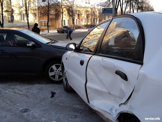 Магнитогорск. Сегодня днём на перекрестке ул. Строителей и Менделеева автолюбительница на новеньком Шевроле не только повредила новенькую Тойоту, но заодно и свалила ненавистный ей «кирпич».