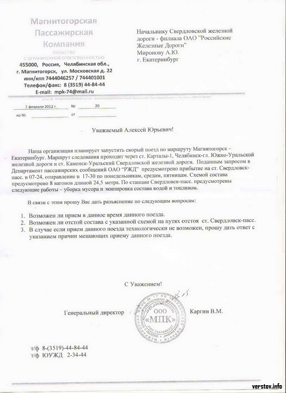 Провели опросы среди горожан и жителей близлежащих районов, определили пользующиеся спросом направления, собрали все нужные бумаги, прошли комиссии, арендовали вагоны и уже объявили о запуске пилотного рейса «Магнитогорск-Екатеринбург», но… внезапно все застопорилось. Часть вагонов по неизвестной причине застряли в Челябинске, часть – в Тюмени; официальные запросы возвращаются без ответов. Отсутствие одной-единственной подписи «сверху» и есть тот красный стоп-сигнал для маршрутов «Магнитогорск-Екатеринбург» и «Магнитогорск-Санкт-Петербург».