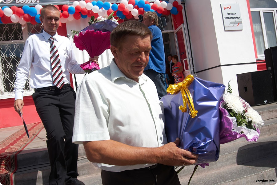Работников магнитогорского вокзала в день юбилея поздравляли руководители Южно-Уральской региональной дирекции железнодорожных вокзалов, председатель городского Собрания Александр Морозов, представители администрации Ленинского района. На праздник прибыли и 20 руководителей вокзалов близлежащих городов. «Тут у нас потом банкет пройдет, прямо на вокзале», - поделился с нами один из организаторов праздника.