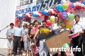Крыльцо вокзала превратилось в импровизированную сцену, на которой выступали самодеятельные коллективы, ВИПы, вручались цветы и подарки работникам вокзала.