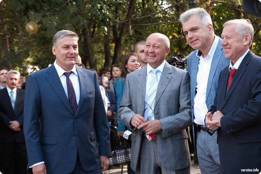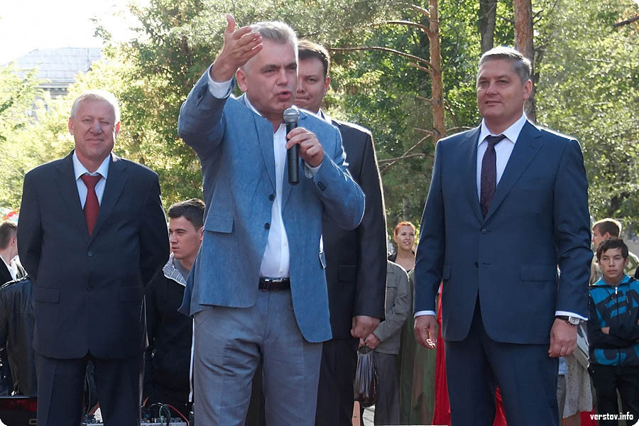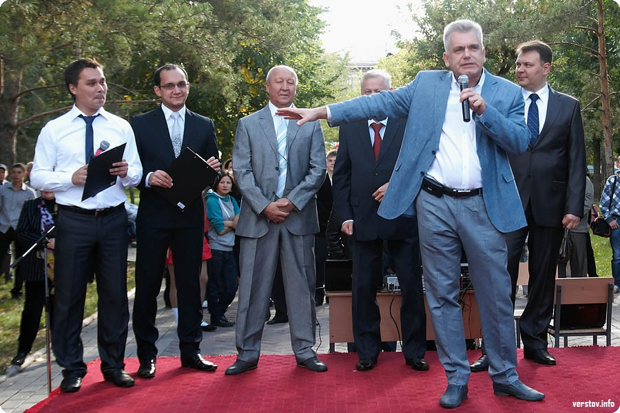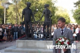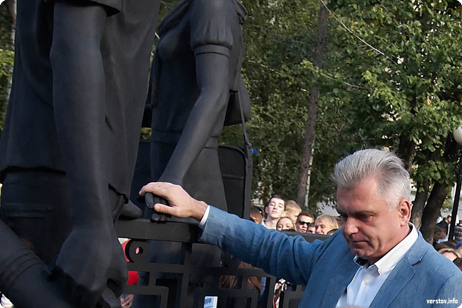 Магнитогорск. Первые лица города и комбината торжественно и с юмором отметили открытие нового городского памятника в Университетском сквере.