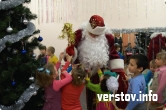 Стихи рассказаны, сплясаны танцы вокруг елочки и приходит время сладких подарков. Вместе со своим помощником Евгением Емельяновым, председателем магнитогорского отделения партии «Справедливая Россия» Дед Мороз раздает ребятишкам сладкие кульки.
