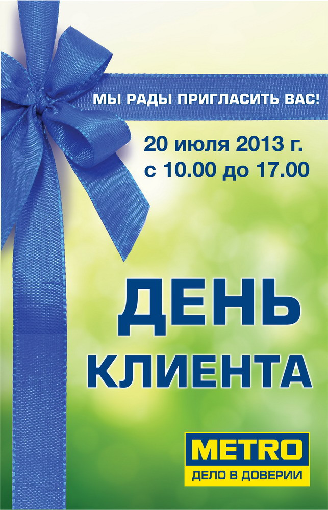 Магнитогорск. 20 июля торговый центр МЕТРО с удовольствием приглашает вас, ваших близких, друзей и, конечно же, детей на День клиента! С 10:00 до 17:00 вы сможете не только совершить нужные покупки, но и приятно провести время и еще раз зарядиться положительными эмоциями.