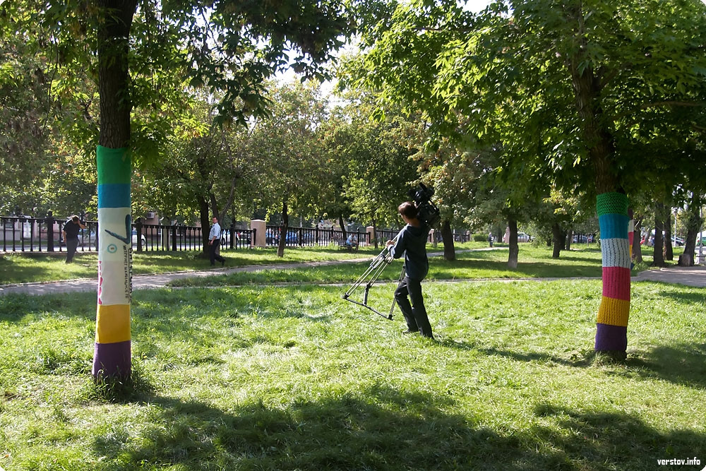 Сегодня днем десять деревьев в ярких «одеждах» в парке по проспекту Металлургов рядом с памятником родителям были представлены журналистам и городскому руководству. Традиция «одевать» деревья в вязаные украшения, и не только деревья, но и скамейки, фонари, фонтаны, заборы, столбики и даже автобусы и памятники уже несколько лет существует в Европе и Америке. И называется она ярнбомбинг или «вязаные граффити». Но если в Европе украшают улицы и скверы сами жители, то в нашем городе инициатором развития подобной традиции выступили служба инвестиционных проектов и стратегического развития городской администрации и председатель МГСД Александр Морозов.