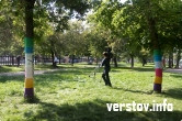 Магнитогорск. Деревья в полосатых вязаных «свитерах» появились в парке по проспекту Металлургов по инициативе городской администрации.