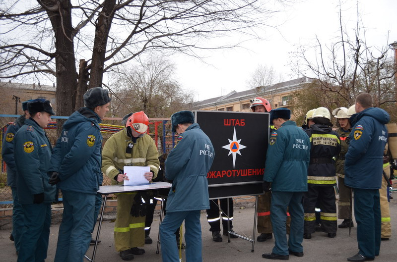 Пока детей уводят в центр временного размещения, подъезжает первая автоцистерна. За ней поспевает вторая и третья. Одни спешат в здание школы по лестнице, развернув пожарные рукава, другие - эвакуируют пострадавших через окно. По легенде пять человек не смогли самостоятельно покинуть помещение. Буквально все выходы были заняты огнеборцами, пока одни ищут погорельцев в кабинетах школы, другие уже обнаружили очаг возгорания. Все действия пожарные выполняют одновременно и слаженно, сообщая практически о каждом своем шаге в штаб, который развернули во дворе школы.