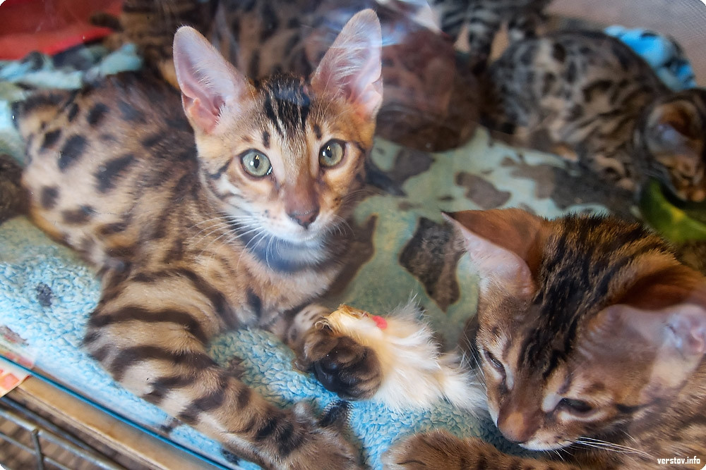 Но самой-самой элитной стала кошка породы «саванна». В Магнитогорске она выставлялась впервые. Это новая и очень редкая порода – гибрид домашней кошки и африканской дикой кошки – сервала. Саванна – самая редкая и дорогая в мире порода (стоимость котенка поколения F1 доходит до 20 тысяч долларов, а котенка поколения F4 можно приобрести в Магнитогорске за 1,5 – 3 тысячи евро). Внешне саванна похожа на маленького гепарда.