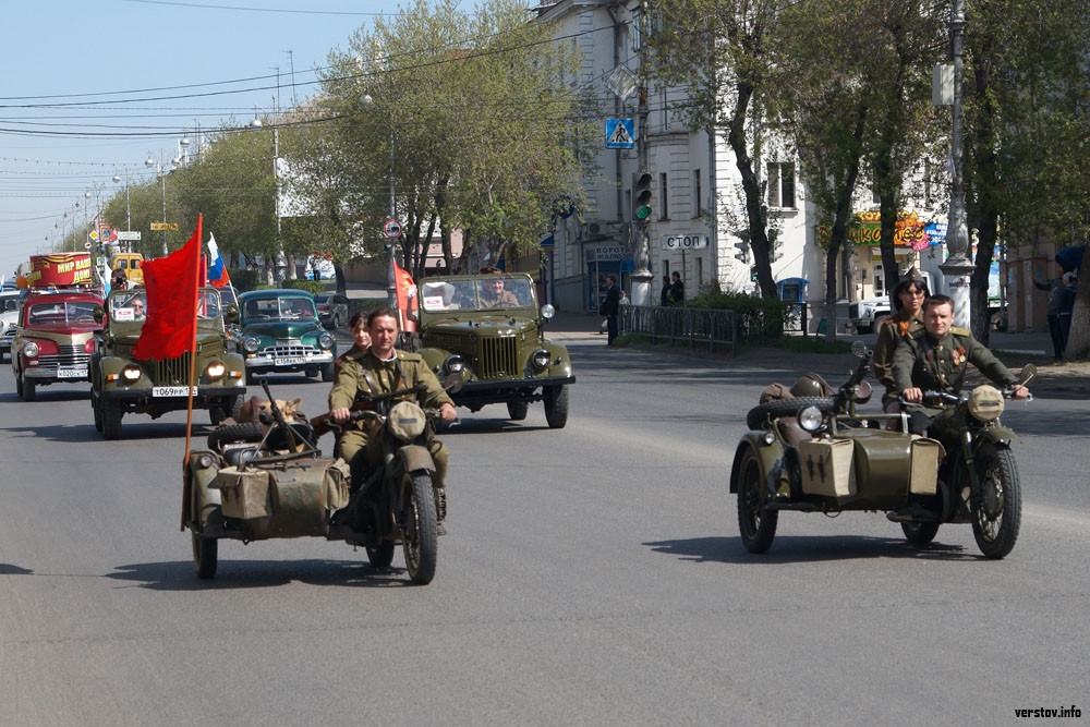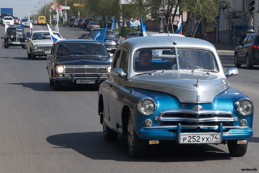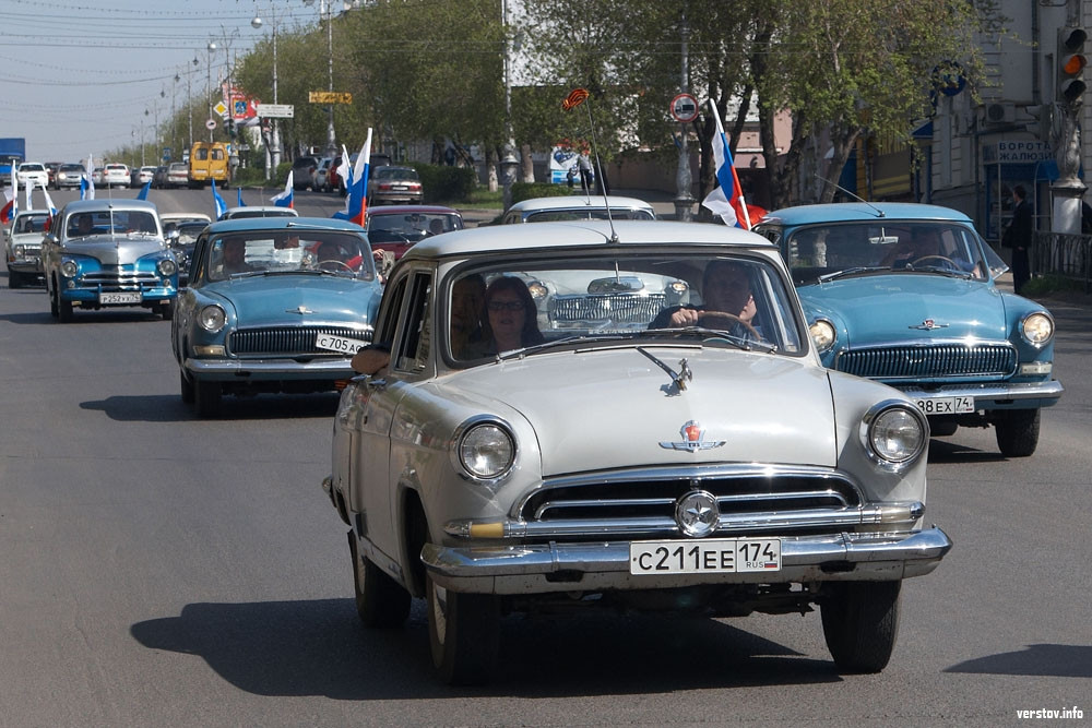 Магнитогорск. Сегодня магнитогорские любители старых автомобилей при участии Союза молодых металлургов провели восьмой ретро-автопробег, посвященный 69-летию Великой Победы.