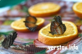 В той же комнате, в прозрачном инкубаторе, где поддерживается необходимый тропический климат, на веточках висят коконы. Скоро из них появятся на свет новые красавицы. В центре помещения – небольшой стол, на нем кружочки апельсинов и вода. Владелица студии рассказывает ребятам, что насекомые питаются водой и соками фруктов. Впрочем, детишки и сами все видят: несколько бабочек, тут же на столе, устроили себе полдник, вольготно расположившись на нарезанных кружочками кусочках апельсина.
