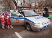 В финале мероприятия воспитанников ждал сюрприз: во двор детского сада приехал патрульный автомобиль ДПС ГИБДД. Мальчишки и девчонки познакомились с устройством автомобиля, специальными световыми и звуковыми сигналами, громкоговорящей установкой и даже испробовали ее в действии: пожелали всем пешеходам безопасных дорог.