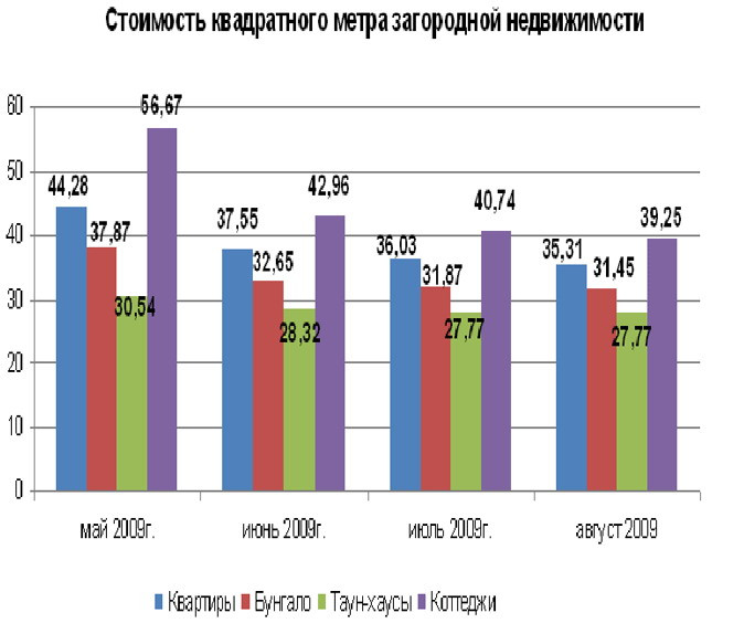 Согласно последним исследованиям аналитического отдела агентства «Рио-Люкс», стоимость квадратного метра загородной недвижимости можно проследить по графику.