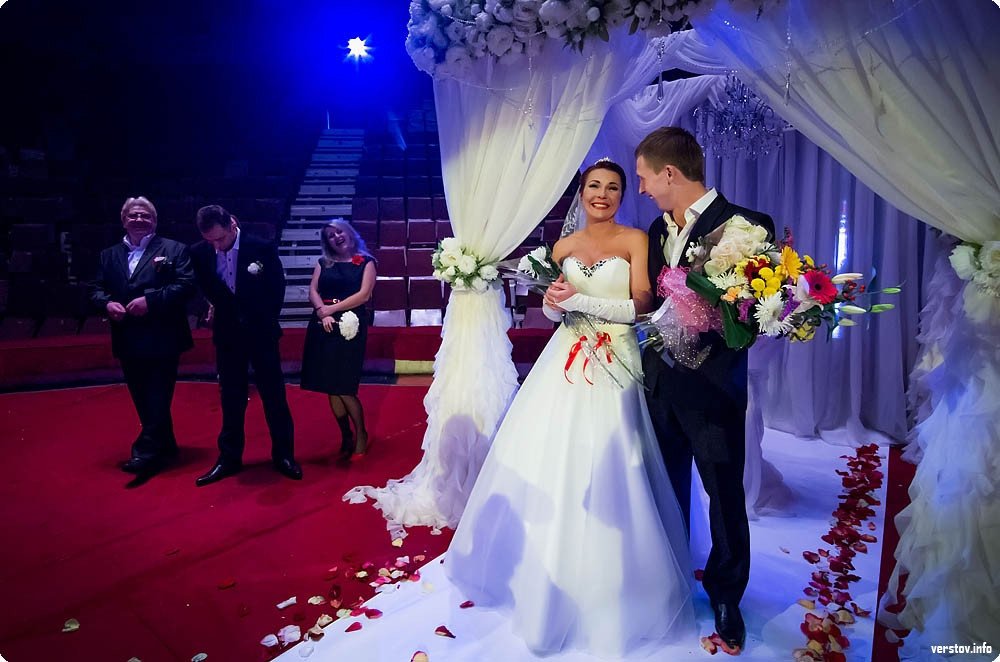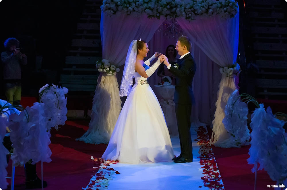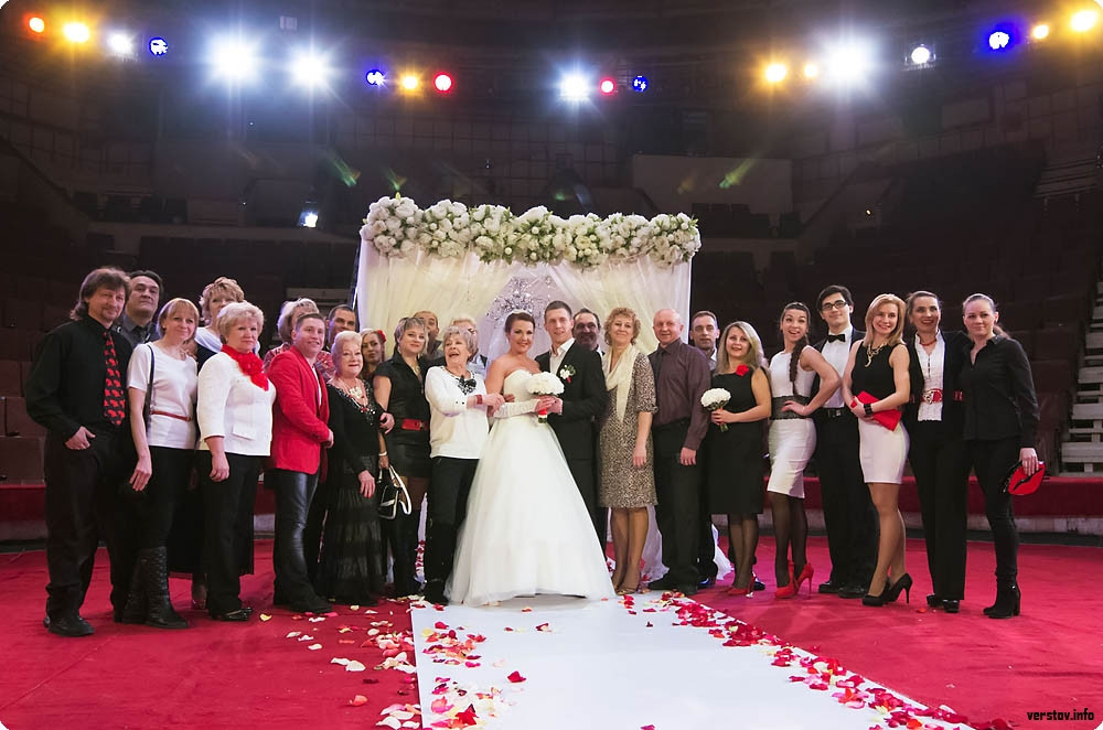 Уже после Нового года ребята решили все сделать быстро и 13 января на арене цирка организовали свадьбу. Церемония была короткой, но очень романтичной. Присутствовали только самые близкие родственники и друзья. После регистрации ребята проехали с фотографом по достопримечательностям Магнитки. А затем отправились с гостями в ресторан. Мама невесты с сожалением отметила, что не все близкие друзья смогли приехать в Магнитогорск. Сами молодые вместе с труппой покидают город металлургов завтра.