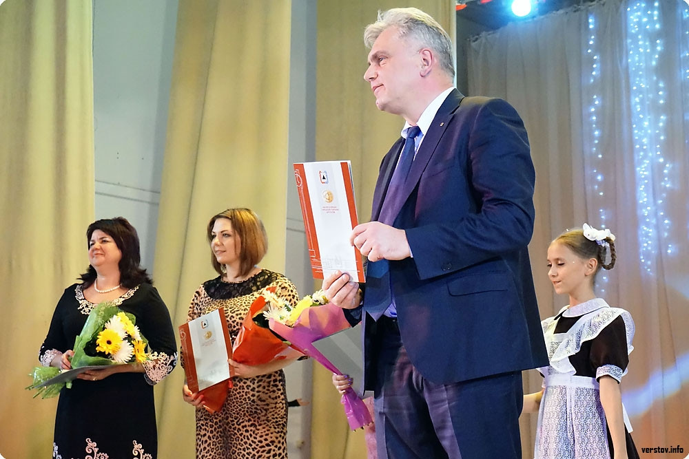 Магнитогорск. И. п. главы города Виталий Бахметьев вручил цветы и солидные денежные премии лучшим учителям города.