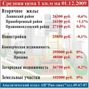 Об изменениях и основных тенденциях на рынке недвижимости Магнитогорска - аналитика от агентства недвижимости ООО «Рио-Люкс». Приведенные цифры действительны на 1 декабря 2009 года.