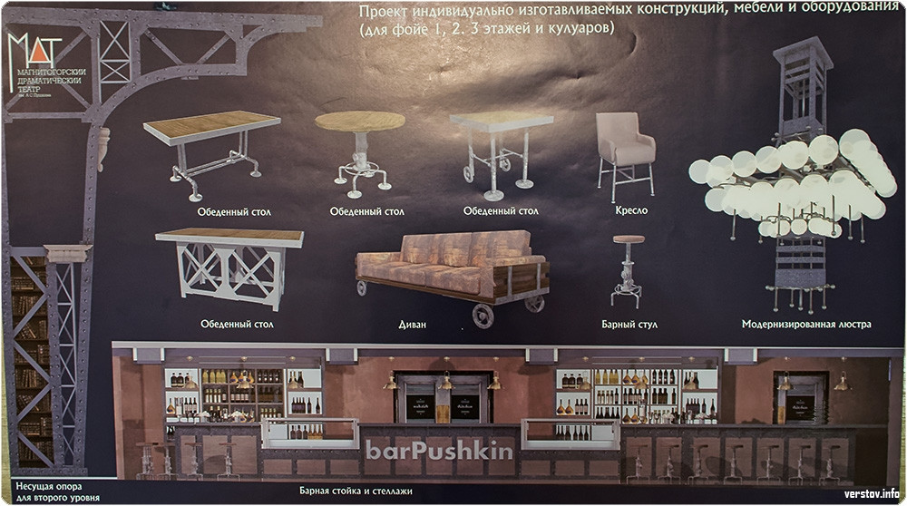 За основу творческой концепции была взята стилистика лофт - вторая жизнь вещей. Например, при изготовлении мебели будут использоваться б/у трубы и фитинги. Такой подход одновременно выглядит стильно и интересно, и в то же время значительно уменьшает смету на проведение ремонта. Уже нашлись организации, которые готовы сотрудничать с театром в этом направлении.
