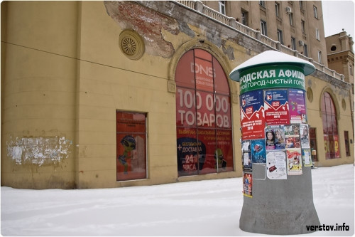 Одну из тумб уже собрались переносить — в Ленинском районе возле трамвайной остановки «Первая палатка» место оказалось невостребованным. Так что рассматривается вопрос о переносе конструкции к магазину «Северный».