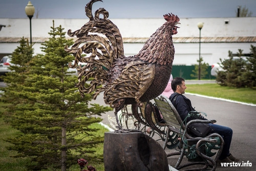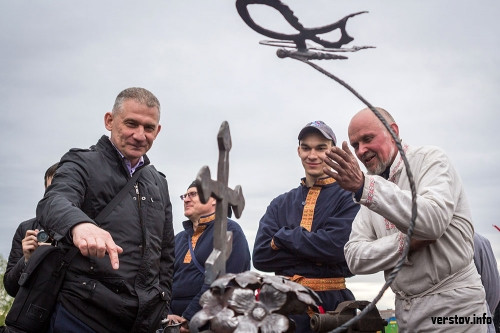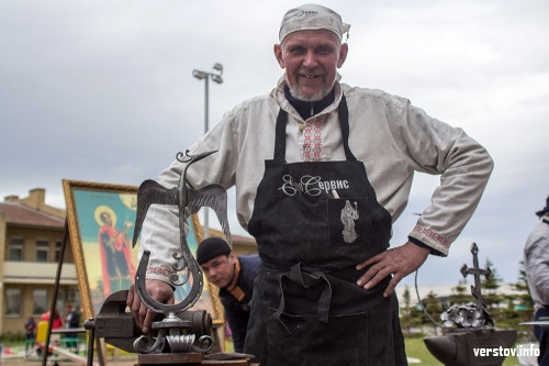 Кузнец Александр Акимов выковал «Душу кузнеца» – филигранная стальная птица, чем-то напоминающаю Жар-птицу, но без пышного хвоста. Ее он ковал пять часов. Эскиз наспех набросал с напарником заранее, но окончательный образ стал проявляться во время основной работы. Сам Александр в кузнечном деле 29 лет. Учился сам – без книжек и прочих технических знаний. Не все, конечно, получалось, но ему удалось достичь мастерства. Акимов рассказал, что кузнецом может стать любой – было бы желание.