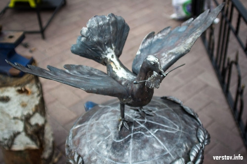 Кузнец Гафур Макамов вместе с сыном Джасуром выковали «Голубя Мира». Полусферу в виде глобуса они сделали заранее. Получилось только со второго раза.