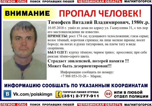 Виталий Тимофеев ушел из дома 31 на улице Галиуллина 10 мая, с тех пор его местонахождение неизвестно.