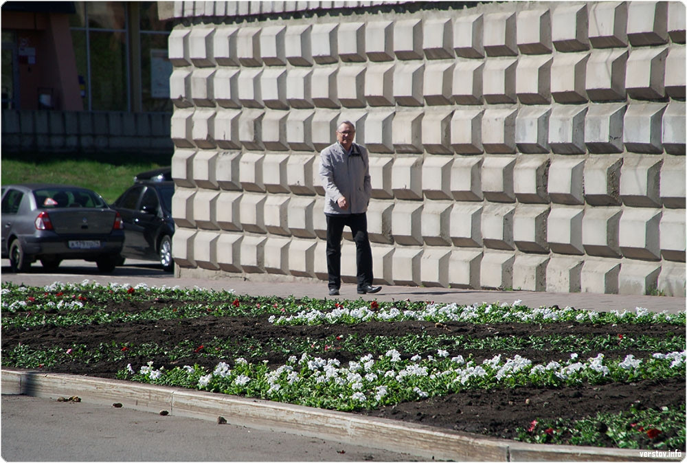 На организованную для прессы высадку цветов на площади Торжеств у городской администрации рабочие ДСУ приехали заранее. Минут за 20 до обозначенного времени на плитке между фонтаном и клумбами уже стояли доставивший рабочих автобус и грузовой автомобиль, в кузове которого находилась рассада. Герои дня - работники ДСУ, которым предстояло сегодня «засветиться» на местных телеканалах, сидели на лавке и, улыбаясь, что-то обсуждали.