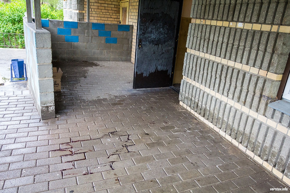 | Коммунальщики уже почистили место убийства, но следы крови еще остались |