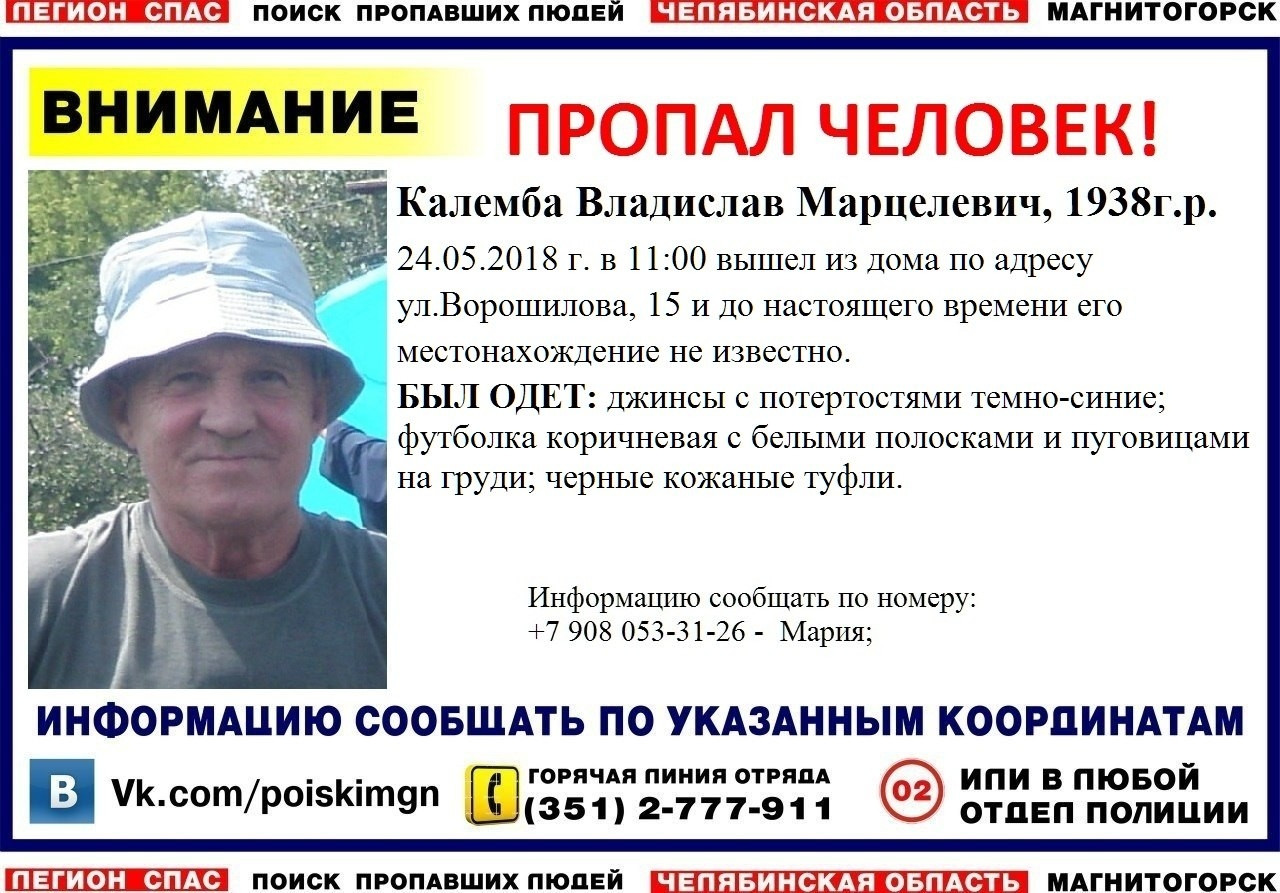 Поиски 80-летнего Владислава Калембы продолжаются. Пенсионер ушел из дома № 15 на улице Ворошилова 24 мая , с тех пор его местонахождение неизвестно.
