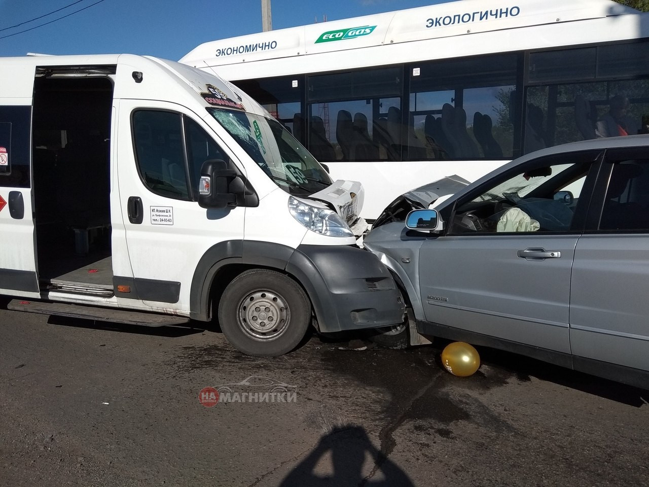 Вот это «поцелуй»! Утром на Калмыкова столкнулись микроавтобус и корейский внедорожник