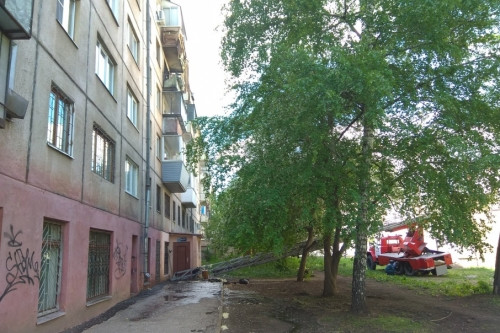 Магнитогорск. Вчера, 5 июня, после тушения пожара, в котором спасли человека, в доме 105/1 на проспекте Карла Маркса у пожарной машины МЧС обрушилась автолестница.