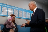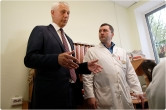 Состоялась и небольшая экскурсия по отремонтированному этажу. Показали картохранилище, кабинеты, в которых можно оформить страховой полис или записаться на диспансеризацию. Сергей Бердников, правда, с сожалением отметил отсутствие нормальных полотенец в комнате персонала. Зато высоко оценил отремонтированную входную группу и автоматические двери: