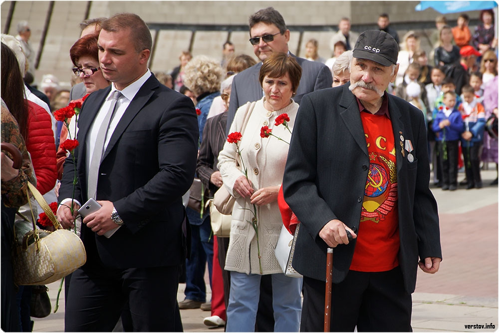 Затем в память о погибших в Великой Отечественной войне, в память о тех, кто не вернулся из боя, была объявлена минута молчания, после чего к Вечному огню были возложены цветы.