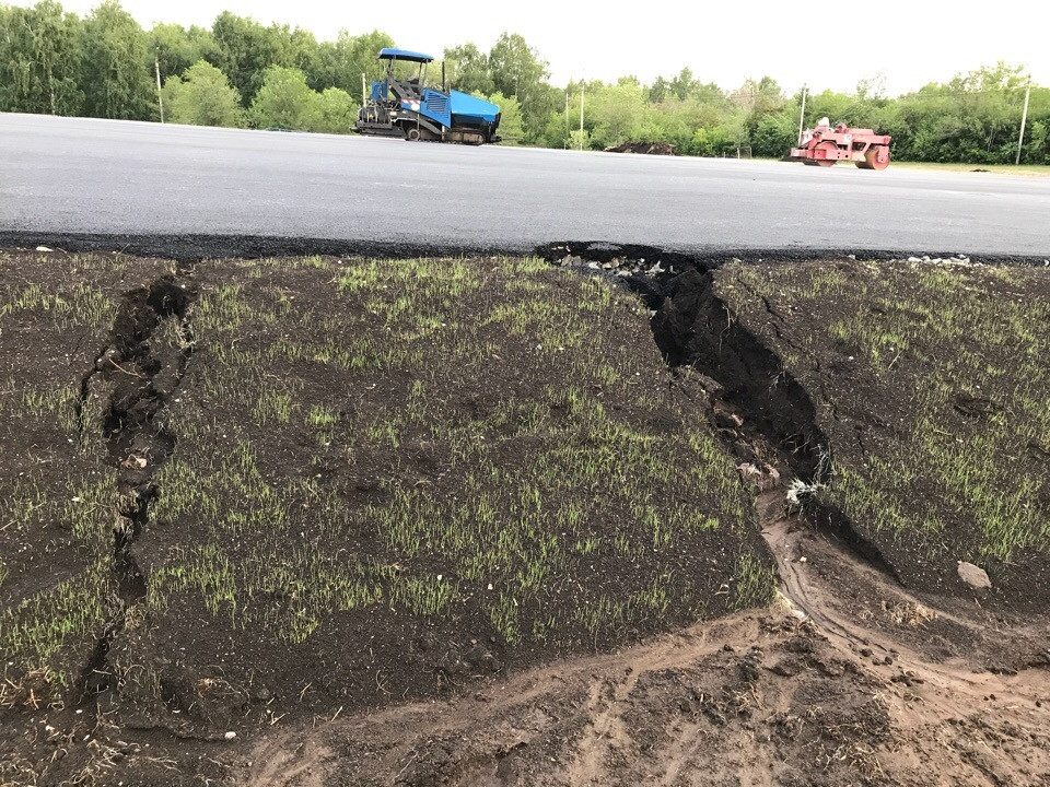 Но дождь, прошедший 14 июля, испортил красивую картину. Были ли проведены работы с нарушением технологии или на данном этапе работ такое ЧП после дождей было неизбежно, но на снимках явно видно, как дождь размыл земляной фундамент, и начинает разрушаться верхний слой асфальта.
